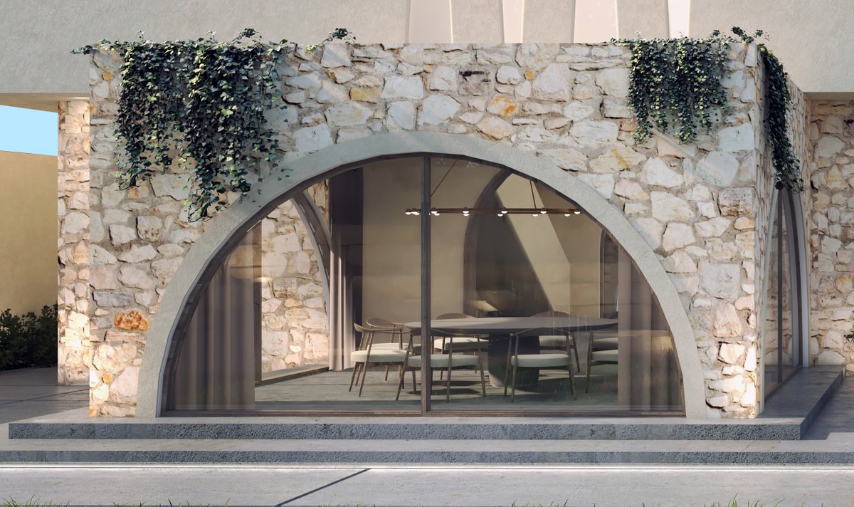 هنا راح نشارك معكم اعمالنا و كل ما يهمنا في مجال المعمار و التصميم الداخلي. صورة من احد اعمالنا في مجال التطوير (فيلا القوس) و هي عباره عن كتلتين فوق بعض الارضيه تمثل طريقه البناء في الماضي و الثانيه تعكس الحداثه المستدامة