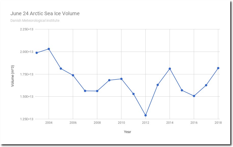 #Arctic Forecast' 'With Arctic sea ice volume highest since 2004, and melting second slowest on record, I am now forecasting that June will finish third highest on record, a little below 2004 and 2003 – with the slowest June melt on record.' https://realclimatescience.com/2018/06/new-arctic-forecast/ …pic.twitter.com/xEp1OuUqfd