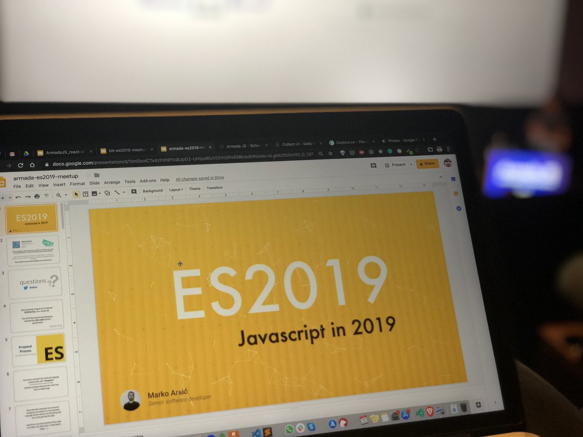 @armada_js conf today at 11:00. Join me at Room 5 to hear more whats new in ES2019/ES10#armadajs#javascriptpic.twitter.com/wOMTqxFoCH