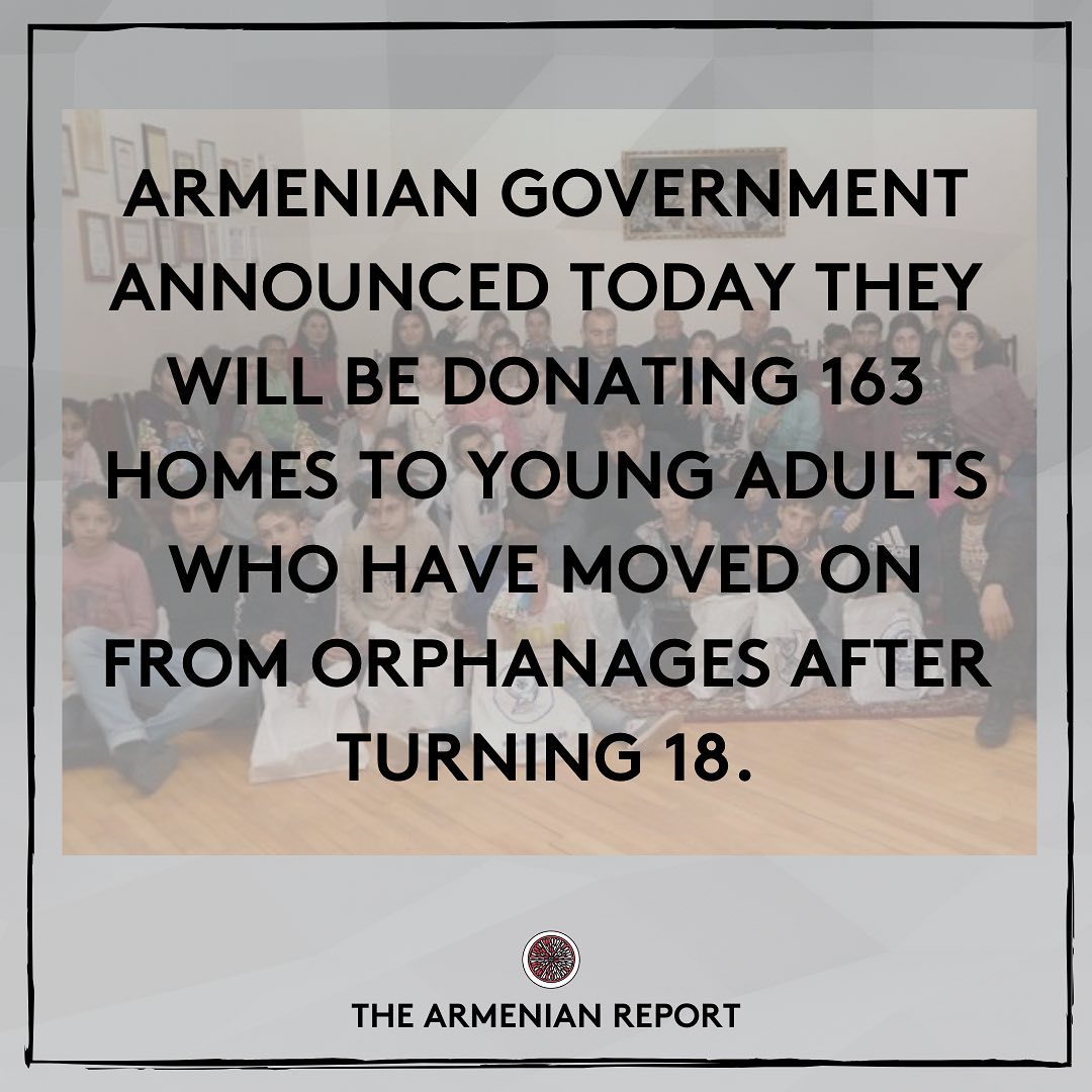 Armenian government announced today that they will be donating 163 homes to young adults who have moved on from orphanages after turning 18. source: ArmGov