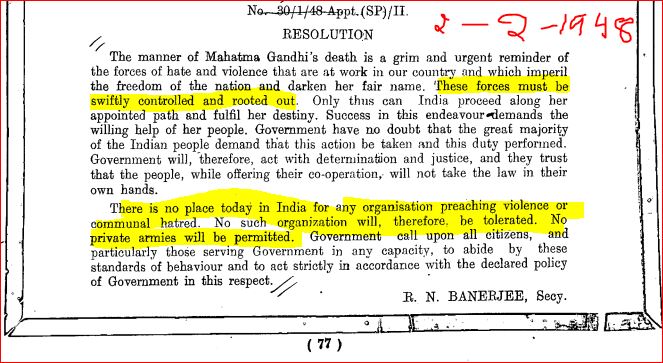 #India for any organisation preaching#violence or#communal#hatred. No such organization will, therefore, be tolerated. No private#armies will be permitted -#quote from Govt Resolution 2Feb1948 on#MahatmaGandhi's#assassination#ThoughtForTheDaypic.twitter.com/j14cyYGyg6