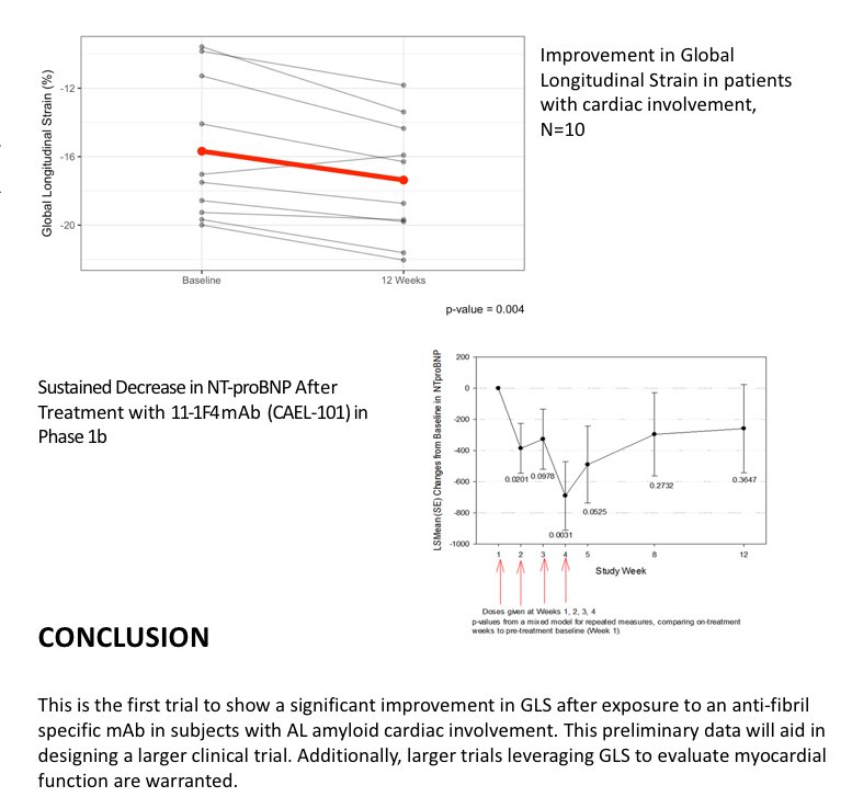 #ASE2018: Cardiac AL patients treated with 11-1F4 had significant improvement in Global Longitutinal Strain post-treatment, p=0.004. Patients with both kappa and lambda amyloid light chain subtypes were studied. pic.twitter.com/dxPJ5aHIP0