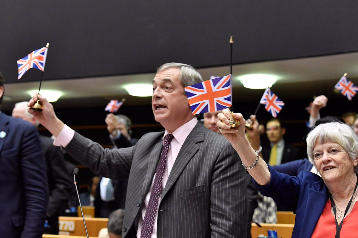Brexit Party MEPs hurl insults at the European Parliament, boast about Brexit and wave Union Jack flags.