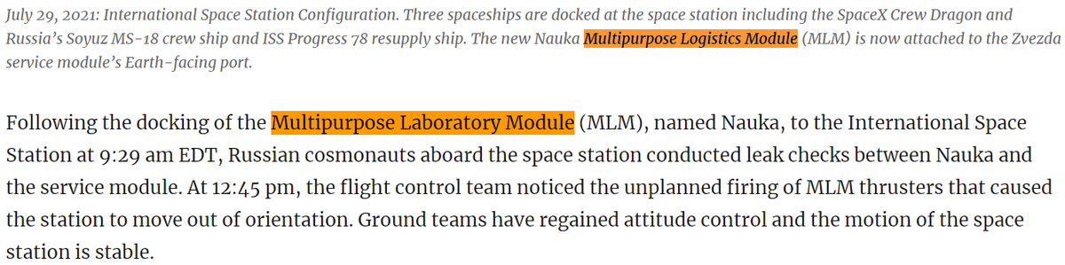#AskNASA Does the acronym in "Nauka MLM" stand for Multipurpose Laboratory Module, or Multipurpose Logistics Module? I've seen (and heard) NASA use both names interchangeably, even within the same blog article. Thanks for the clarification.@NASA#Nauka@roscosmos@Rogozinpic.twitter.com/o9tVBWUArg