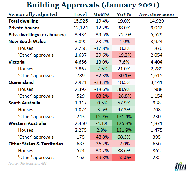 Big pullback in building approvals after recent strength with Homebuilder pushing the numbers around