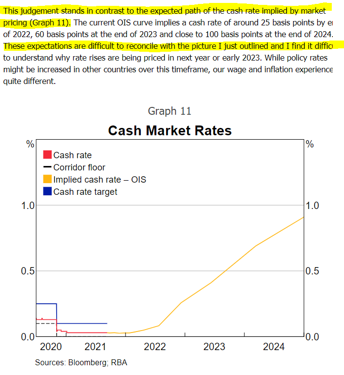RBA's Lowe suggests the market is mis-pricing cash rate expectations finds them "difficult to reconcile" with the Bank's views...