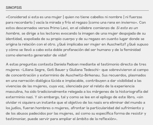 #DanielaPadoan#Comounaranaeninvierno http://altamarea.es/producto/como-una-rana-en-invierno-tres-mujeres-en-auschwitz/ … Testimonio de tres mujeres deportadas a#Auschwitz Considerad si esta es una mujer quien no tiene cabellos ni nombre ni fuerzas para recordarlo vacía la mirada y frío el regazo como una rana en invierno.#PrimoLevipic.twitter.com/rr7Hwp8edo