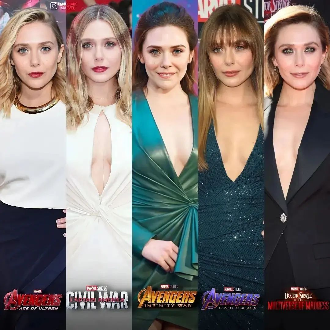 Elizabeth Olsen at different Marvel Movies World priemere.