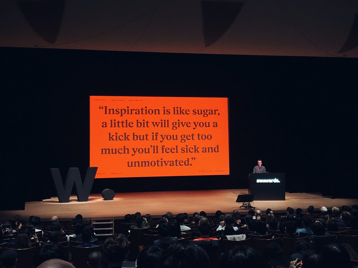 “The biggest enemy of creativity is inspiration” Great presentation by @claudioguglieri#awwwardsconf pic.twitter.com/nzRAXvujKW