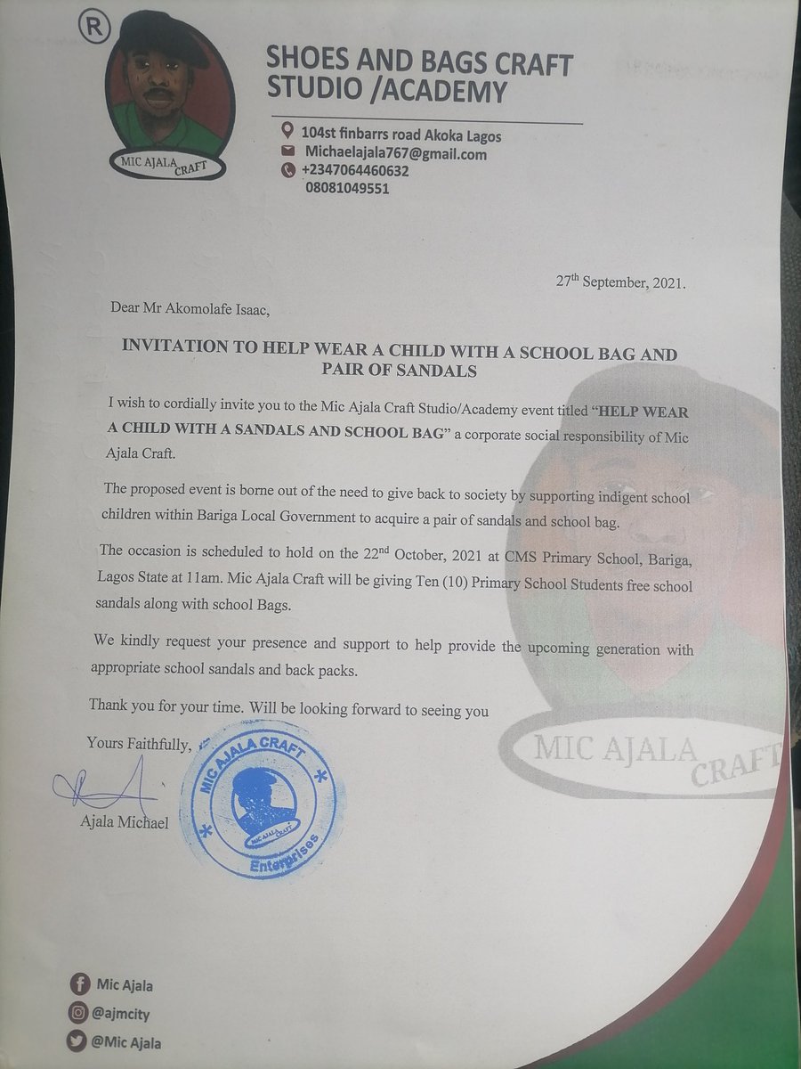 This is a non-profit organization that can help reach the less privilege children in the society who can't afford sandals and bags