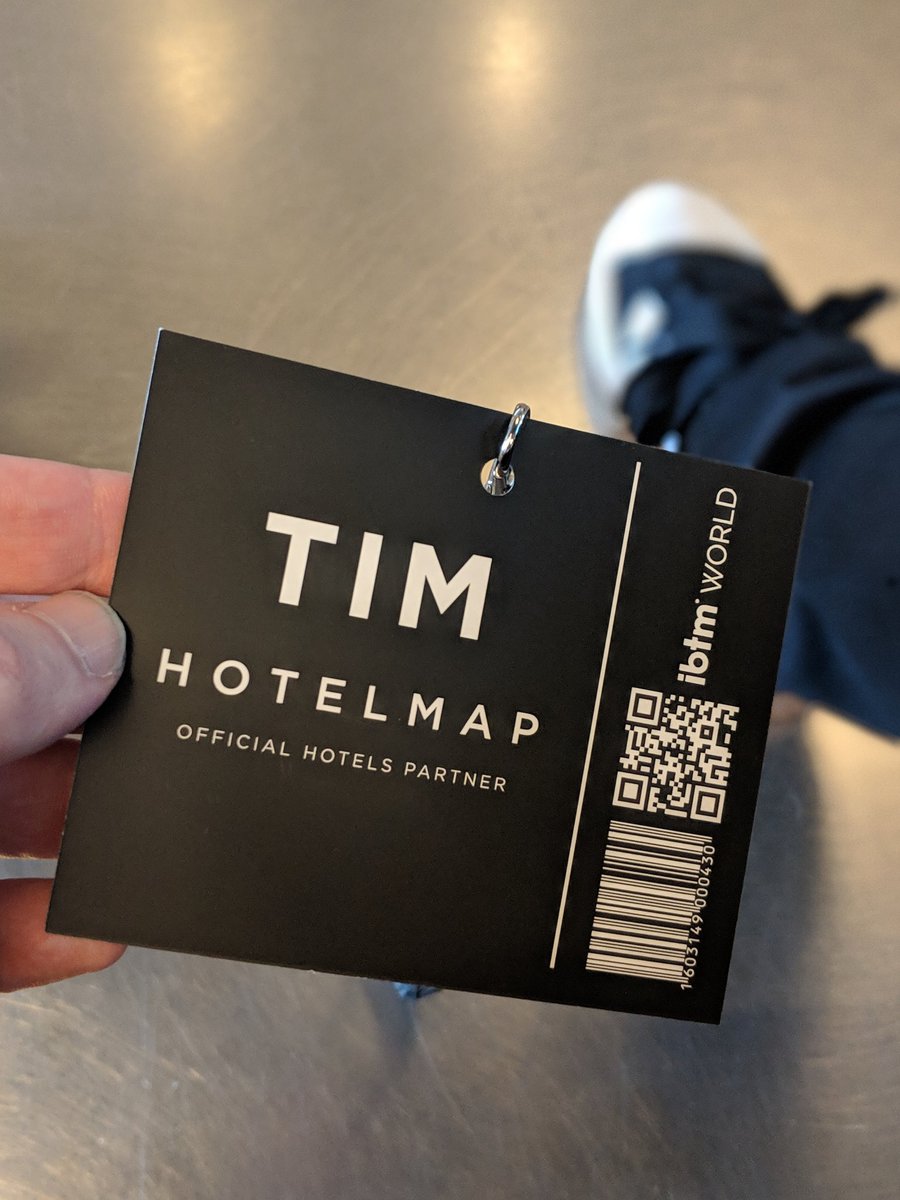 Wow, where to even START? ALL CAPS 1st name (size is OK tho), but unless his last name is HOTELMAP, WTF? Also, not only a terrible QR code on the front, but ALSO a bar code? Spinny non-adjustable lanyard as well. I'm going to be generous and give this a 0.5/4 stars
