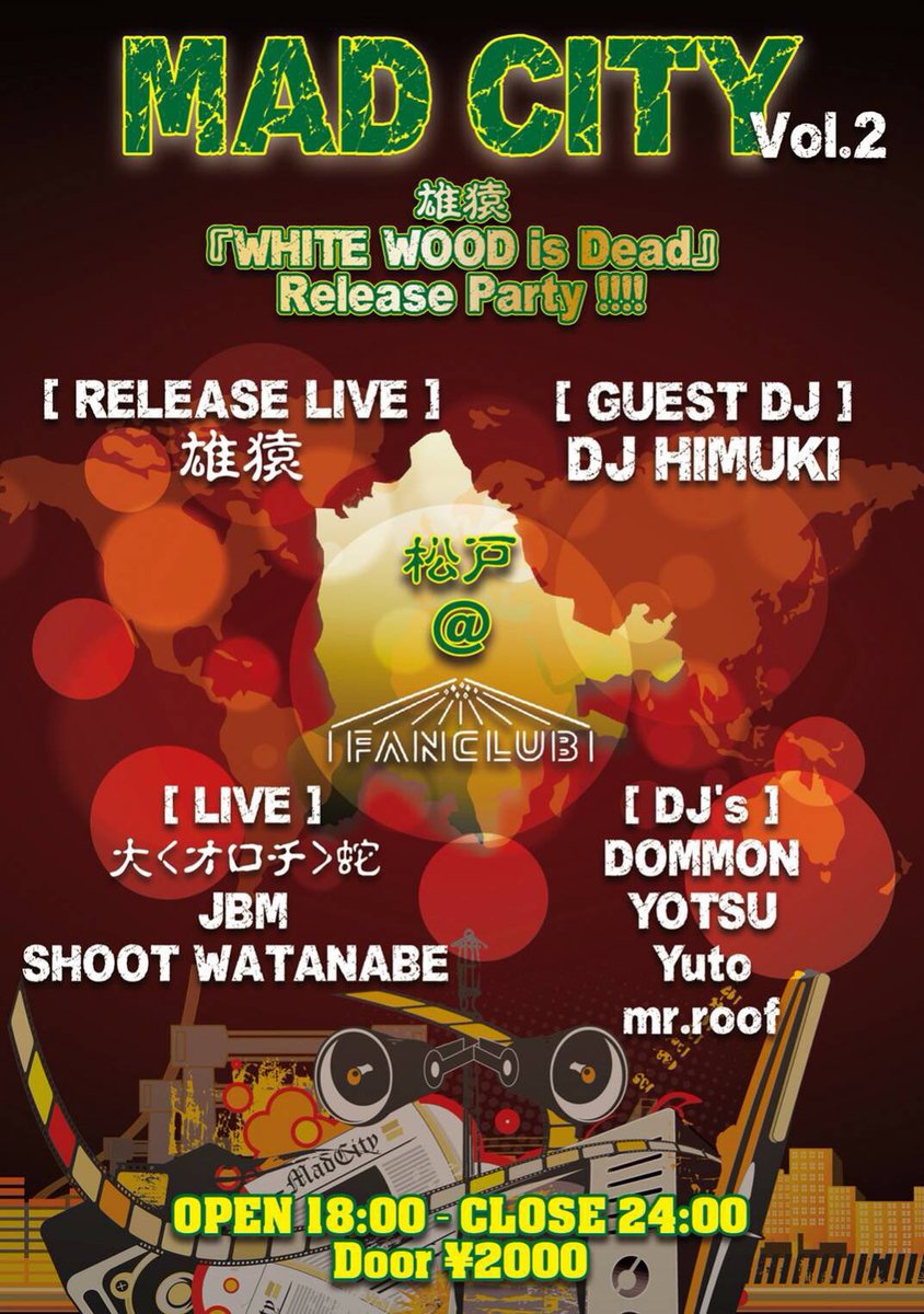 【PARTY INFO】 2018.2.3(SAT) MAD CITY VOL.2 AT. FAN CLUB (松戸) LIVE:JBM&DJ MASARU出演!