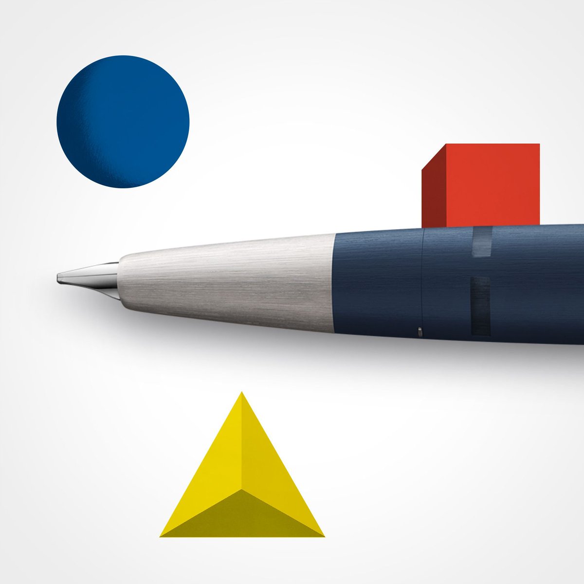 A tribute to the Bauhaus: LAMY 2000 dark blue Bauhaus. Deep blue, brushed finish, platinum- finished nib in 14 ct gold. Limited to 1919 pieces worldwide.