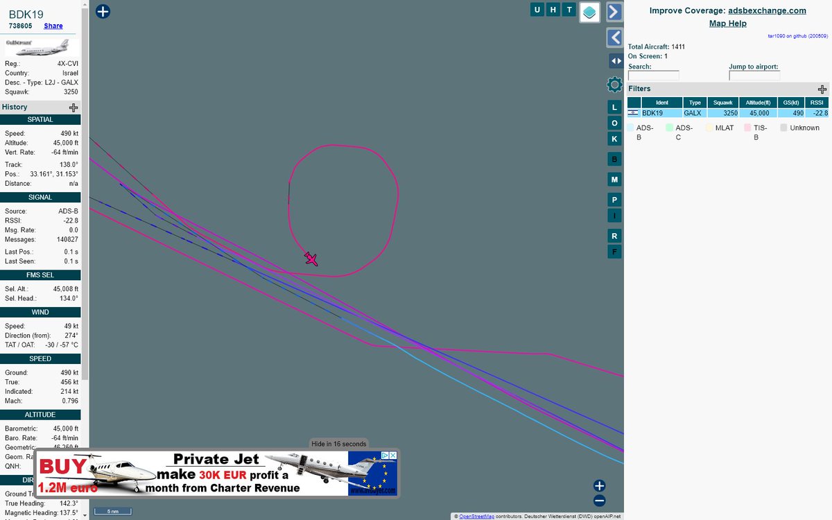 #BDK19 was likely to be holding at FL450 near unknown - geo locator service failed#AvGeek#holding https://tar1090.adsbexchange.com/?icao=738605&zoom=10 …pic.twitter.com/stfmuLoVTG