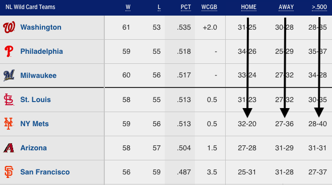 #MLBWildCard, Mets HAVE TO play better on the road and against teams over .500. It's great they've done well against sh!t competition the past 3 weeks, but the real test starts tomorrow.#YaGottaBelieve#LFGM#BeTheBest =#BeatTheBest pic.twitter.com/DBanAabU1I