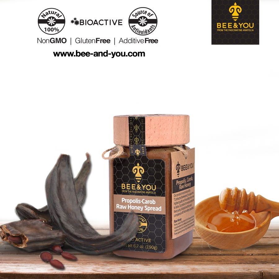 BEE&YOU Propolis Carob Raw Honey helps to satisfy your sugar cravings and energy requirement. It also supports your healthy and balanced diet with it's high antioxidant and iron content. It has a natural antioxidant content of min. 5000 mg/kg.