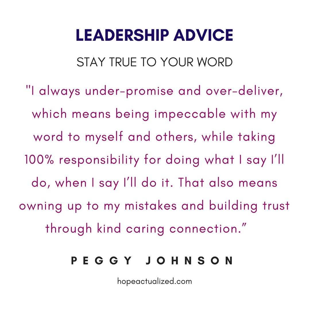 Stay true to your word “Be honest and transparent with others” ~ Peggy Johnson http://bit.ly/LILeadership