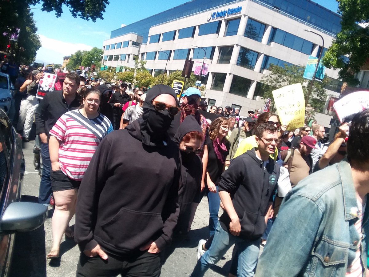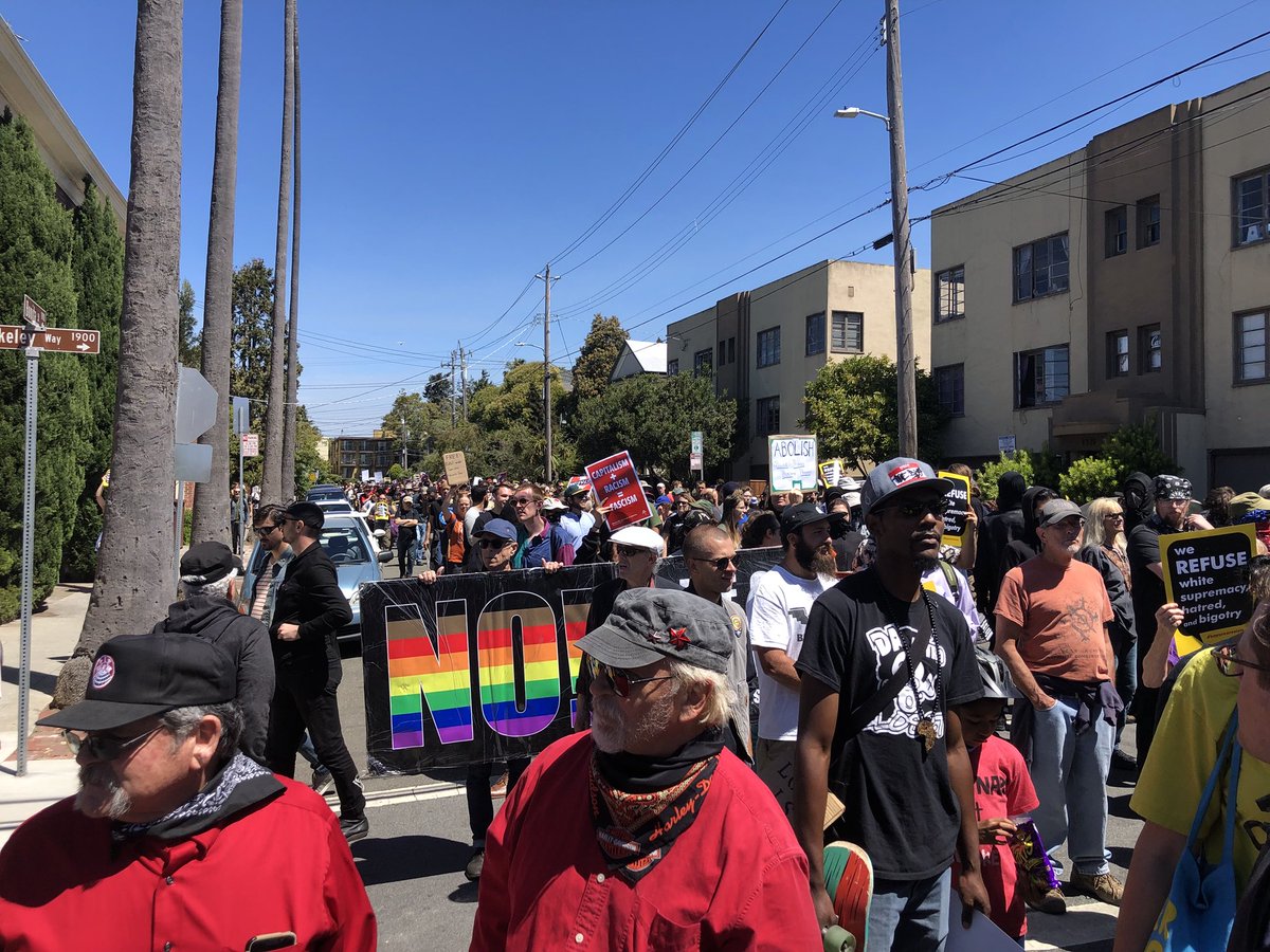 ICYMI: Several hundred anti-fascist protesters today countered white supremacists in Berkeley. 🔹Nine arrested 🔹Smoke grenades and rubber bullets fired 🔹Display created by Revolution Books destroyed by alt-righters