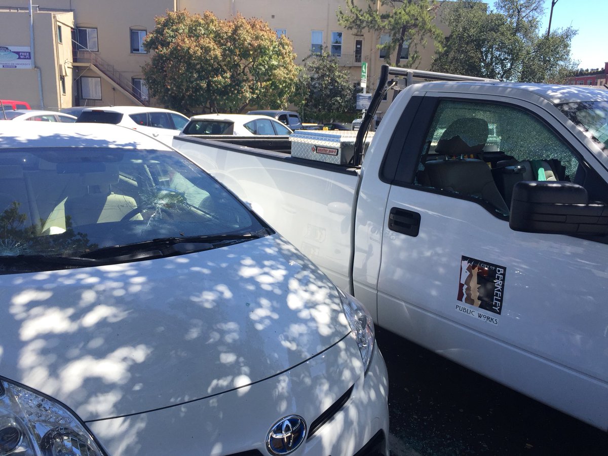 Vandals broke the windows of 21 City of Berkeley cars at Berkeley Way parking lot. That’s got to be expensive to fix. – at Berkeley Way Lot