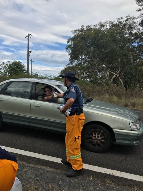 #NSWRFS crews are handing out water on the Pacific Hwy at#Berowra for nth bound motorists caught in traffic from#M1 truck fire.pic.twitter.com/xH7jHL84ck