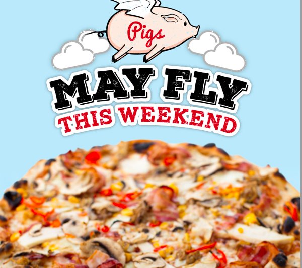 High Flying Birds... What about our fabulous High Flying Pig? This Pizza is a winner. BBQ sauce base, smothered with pulled pork, corn-fed chicken and pancetta, smoked mozzarella, res chillies, mushroom and sweetcorn! A Real Winner