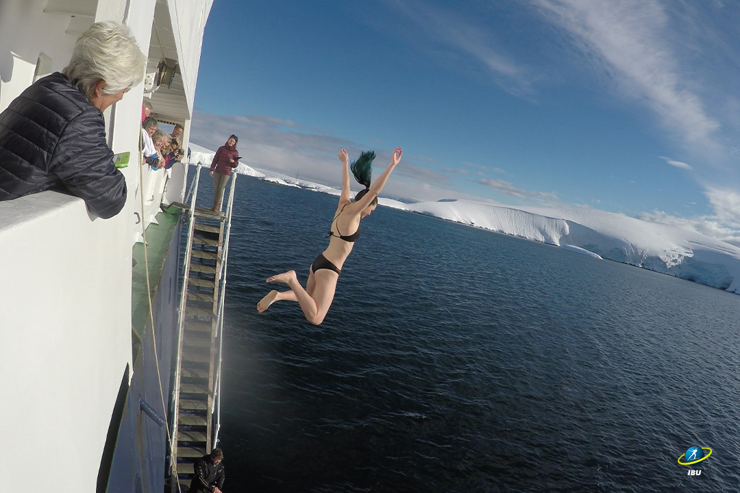 #WorldOceansDay! :o Maybe, biathletes are used to be in cold weather. So, she took a splash into the cold water... I don’t want to jump into the Antarctic Ocean.. :/#biathlon