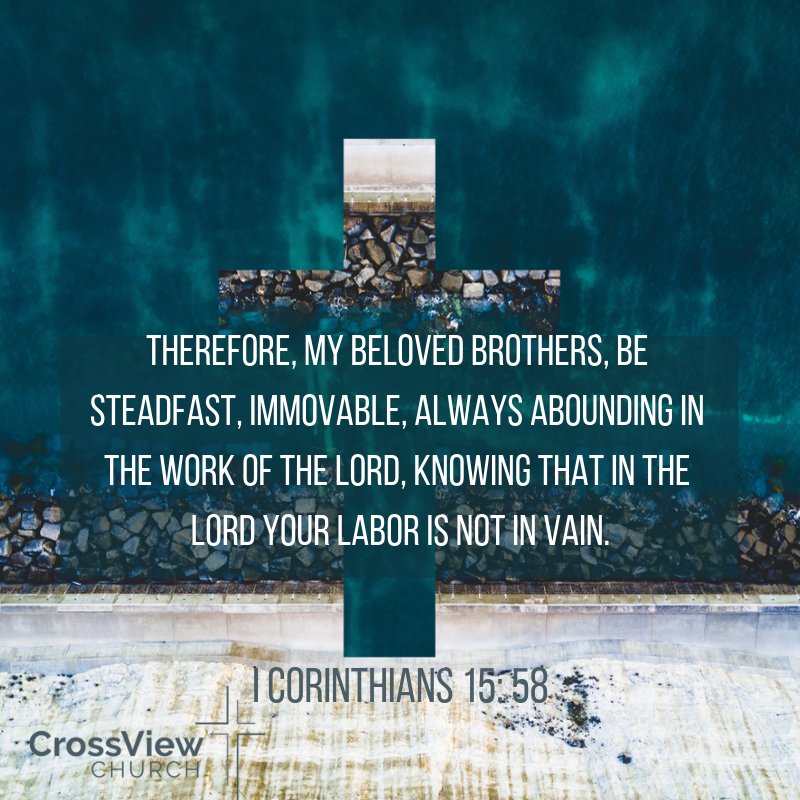 Therefore, my beloved brothers, be steadfast, immovable, always abounding in the work of the Lord, knowing that in the Lord your labor is not in vain. Corinthians 15: 58
