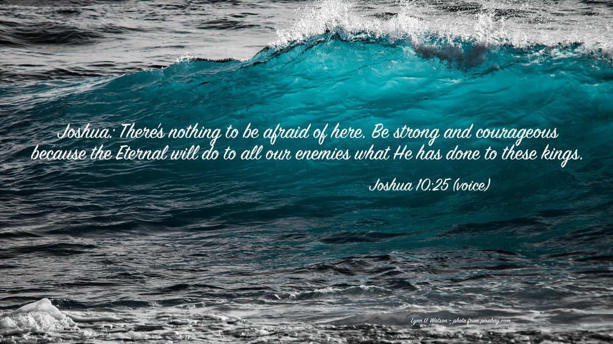 "Joshua: 'There's nothing to be afraid of here. Be strong and courageous because the Eternal will do to all our enemies what He has done to these kings.'" ~Joshua 10:25 (VOICE)