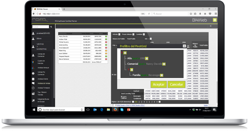 BI4WEB Versión 17 tienes un editor de condiciones complejas