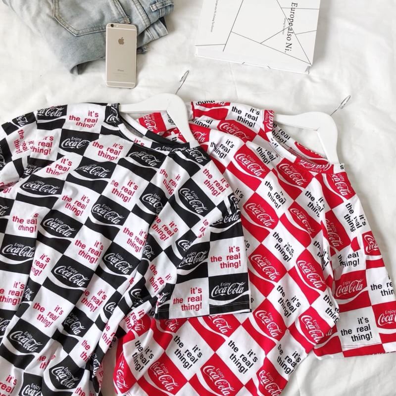 เสื้อยืดโอเวอร์ไซส์. พิมพ์ลายโค้กทั้งตัว งานจริงสวยมากนาจา