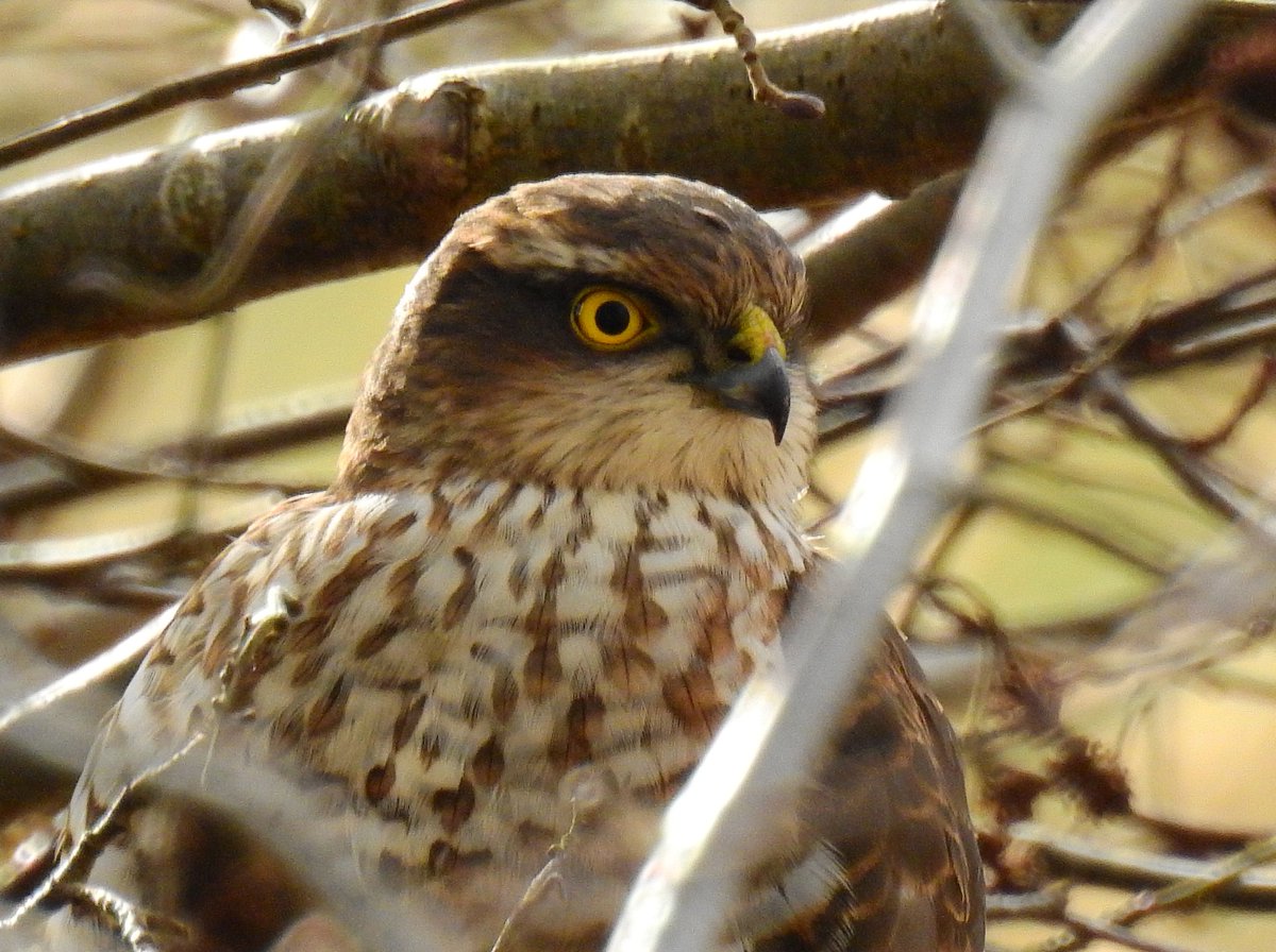 Beautiful Sparrowhawk today on my local patch, which spent about ten minutes chasing a Long-tailed Tit round and round a bush!