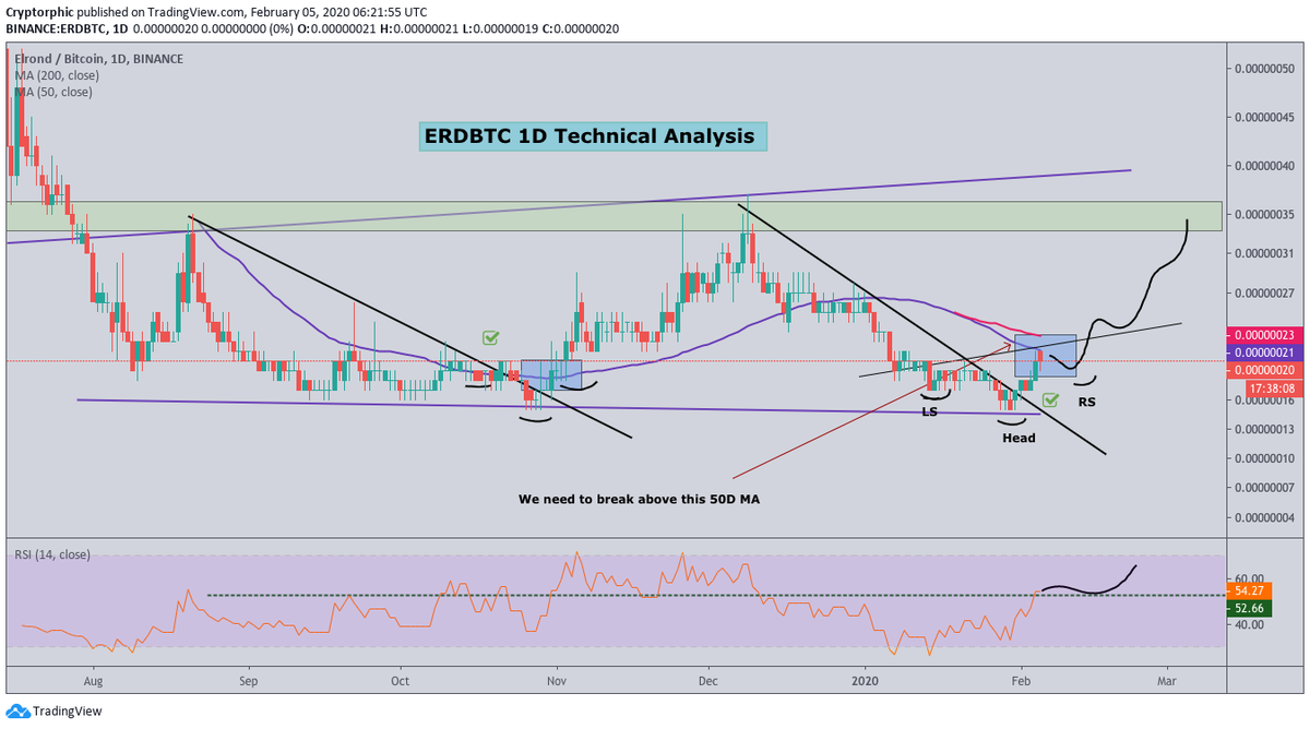 #ERD/BTC 1. Bottom 15 sats. 2. Breakout and retest of the trendline Resistance is already done. 3. Inverse H&S in formation . Entry for now: 18 19 20 sats partially. 4. Trying to breach the 50D MA.#cryptocurrency#Crypto#bitcoins#CryptoNews#Binance#BitcoinCash#Tradespic.twitter.com/zC41Ei3SH5Ovo je potencijalno osjetljiv multimedijski sadržaj. Saznajte više