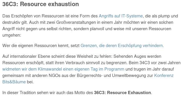 #CfP) für den Congress des Chaos Computer Clubs (@chaosupdates) ist da. Das Motto steht dieses Jahr im Zeichen von#bitsundbäume und lautet "Resource exhaustion". :D Macht mit, von Bit bis Baum. ;) https://content.events.ccc.de/cfp/36c3/index.de.html … pic.twitter.com/lKLrsV1Y8a