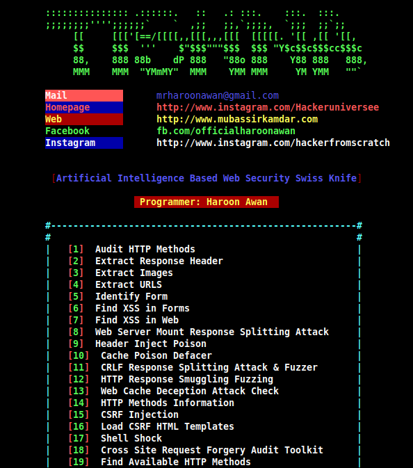 Tishna by Haroon Awan Framework de intrusión automatizado para servidores. https://github.com/haroonawanofficial/Tishna-Automated-Web-Application-Hacker … Se puede actualizar/añadir la lista de