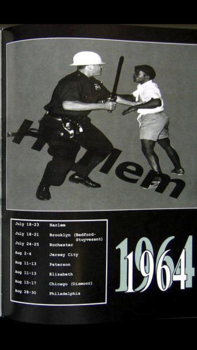 #OtD 18 July 1964, riots broke out in Harlem, New York--preceding summer racial riots in Brooklyn (on the 20th), Rochester, Paterson, Elizabeth, Newark, Philadelphia and Chicago--after a police officer shot an unarmed 15-year-old black youth, James Powell.#Blackhistory pic.twitter.com/6DoewvDvZn