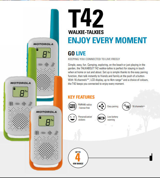 Simple, easy & fun. Camping, exploring, on the beach or just playing in the garden, the TALKABOUT T42 walkie-talkie is perfect for staying in touch when at home or out and about. Read more at: https://www.2wayradioshop.co.uk/motorola-talkabout-t62-walkie-talkies-twin-pack-1596.html …