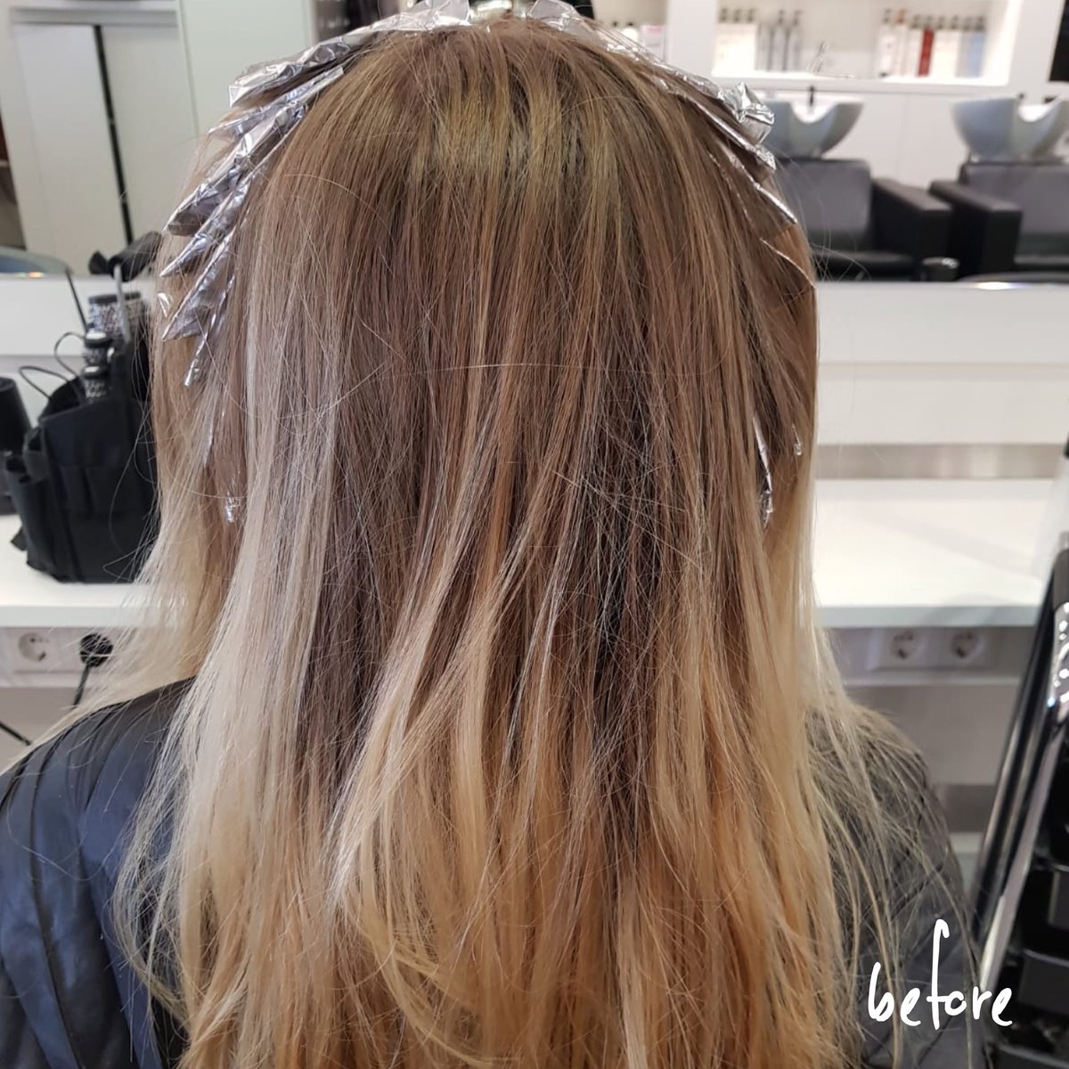 Voor en na: mooi zomerblond. Verzorg droge lokken met Satin Oil Treatment en Keratin Smooth producten uit de Care lijn van Keune