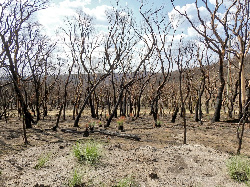 The art of recovery! The Australian bush is resilient and as the charred bark begins to flake on the Eucalypts, new leaves will burst through