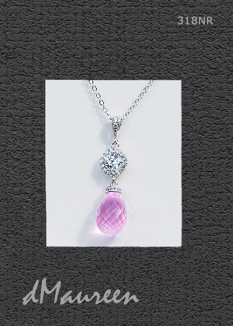 Pink Blush Wedding Jewelry 318NR. White gold Bridal Necklace Round Halo CZ & PINK Quartz Gemstone bead. PINK Wedding October bride http://tuppu.net/659d9d74