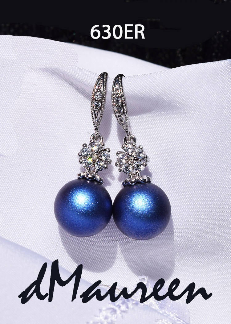 Blue Wedding Jewelry 630ER Deep BLUE Pearl Bridal Earrings rhodium. Floral CZ Bridal Jewelry. Sapphire Blue Wedding Jewelry Something Blue http://tuppu.net/da69b3c4