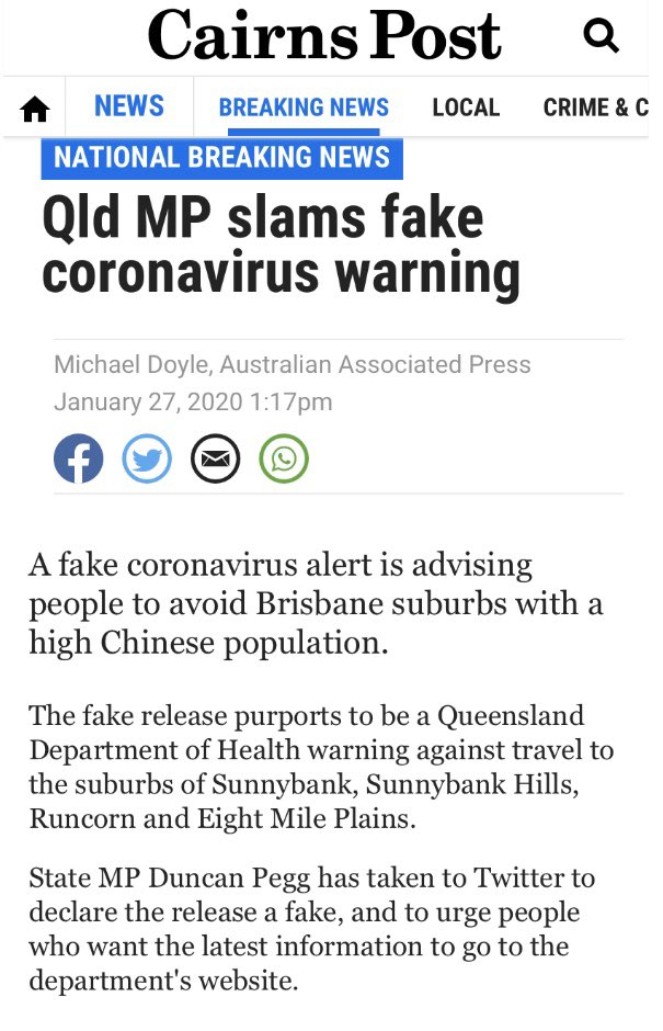 #qldpol#brisbane@Qldaah@QLDLabor#coronavirus https://www.news.com.au/national/breaking-news/qld-mp-slams-fake-coronavirus-warning/news-story/da7b9c685b6166764f64fd73eb6a90e5 …pic.twitter.com/uD3kQ7pUmx