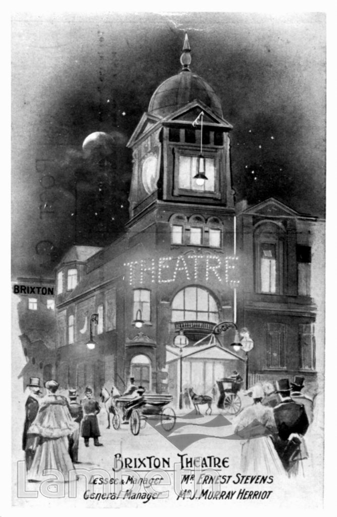 #Brixton#Theatre, opened in September 1896. It was destroyed by a bomb during the#blitz in November 1940 (on right) and was subsequently demolished. Photo of a print advertising the theatre c1910 on left.#Lambeth#londonblitzpic.twitter.com/H3R7GQUe6l