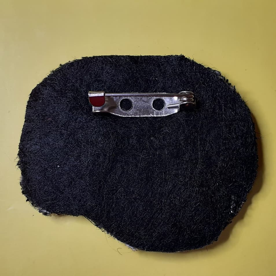 Prototype broche brodée crevette rose.