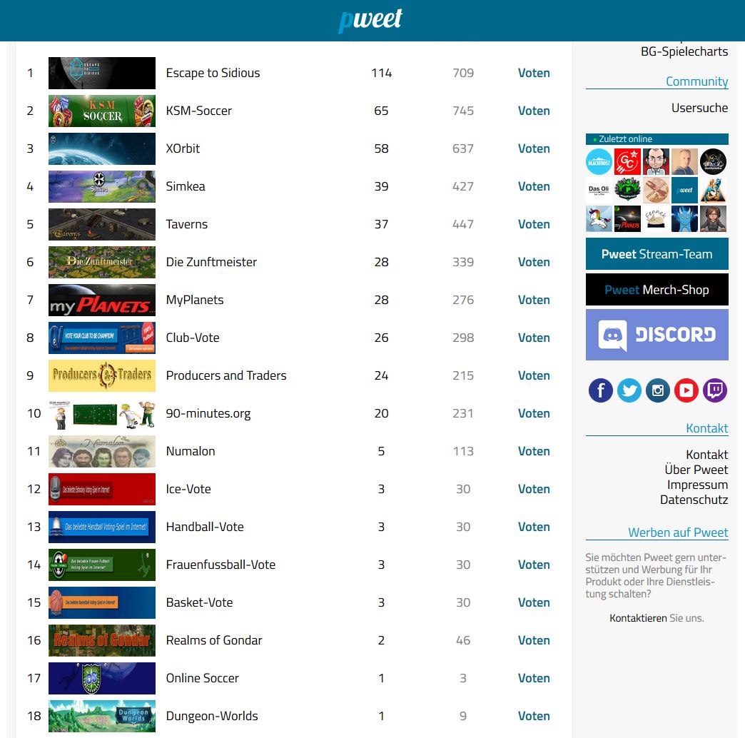 Du magst Browsergames? Das sind perfekte Games für den Spielspaß nebenher. In unserer Voting Chart findest Du eine Auswahl sehr interessanter Games: https://www.pweet.net/charts.php