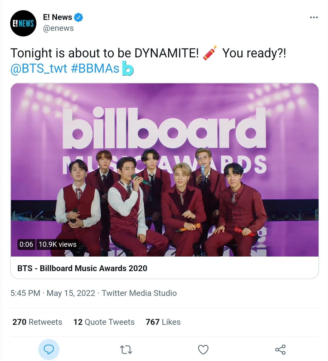 I am so proud of ARMY here at the Billboard Music Awards. They played BTS Boy With Love video during the commercial break and got the loudest applause!