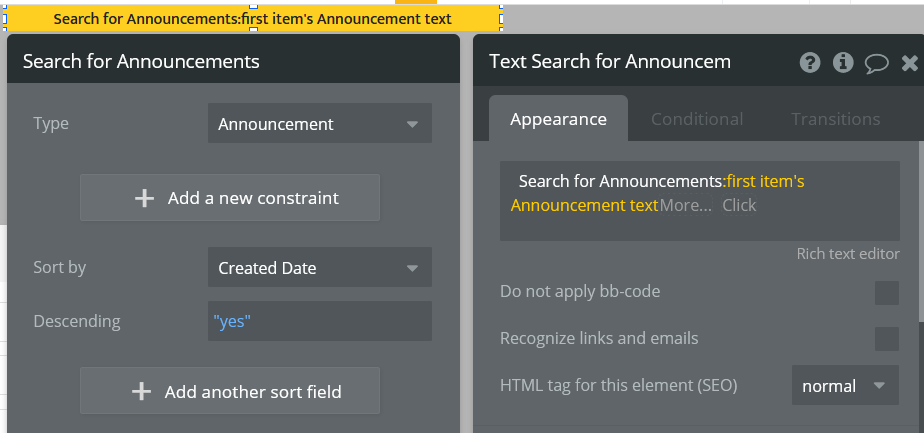 Bubble Tip: Constantly making announcements to your users? Add a reusable element that always displays & searches for the newest announcement text to user dashboards. You could use on=yes or announcement nr=x to help you control if to show & what to show.