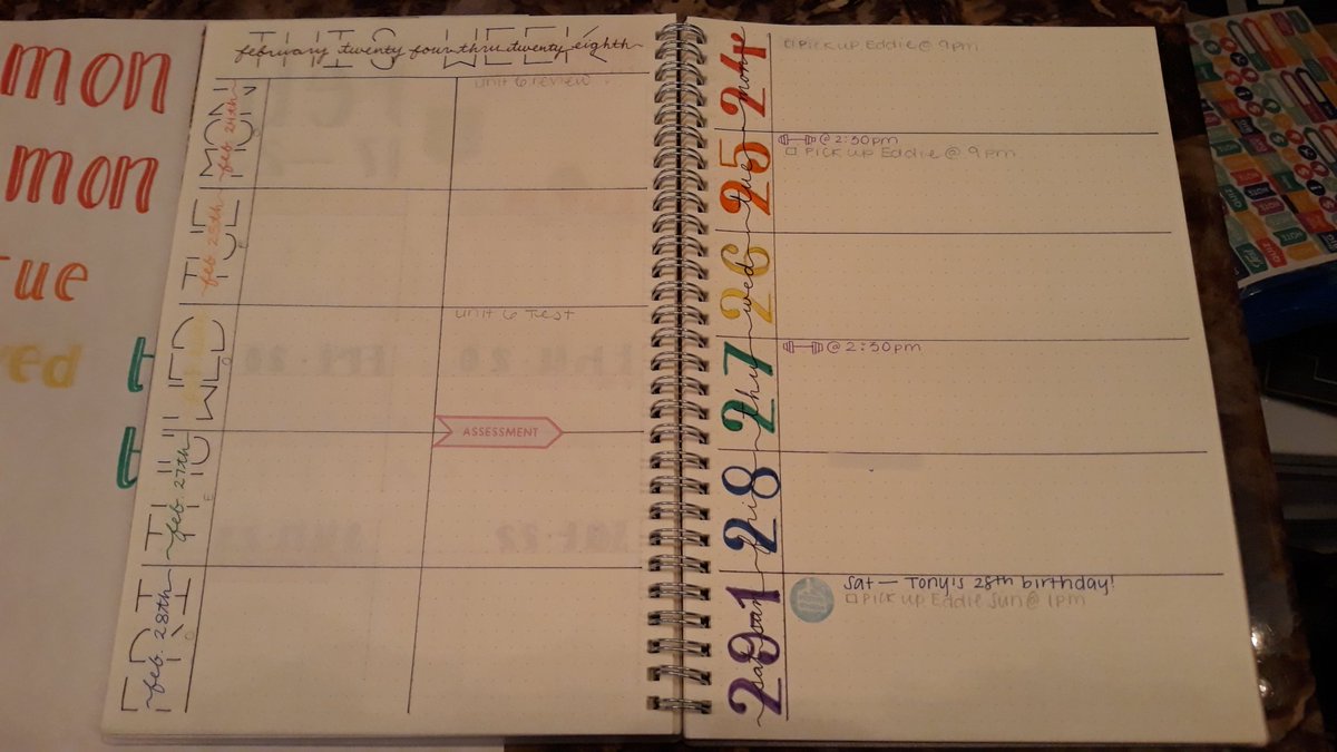 Obviously not artsy pantsy. Here's my february bullet journal for two - him and her. Yep, I "manage" my husband's life. Lol.