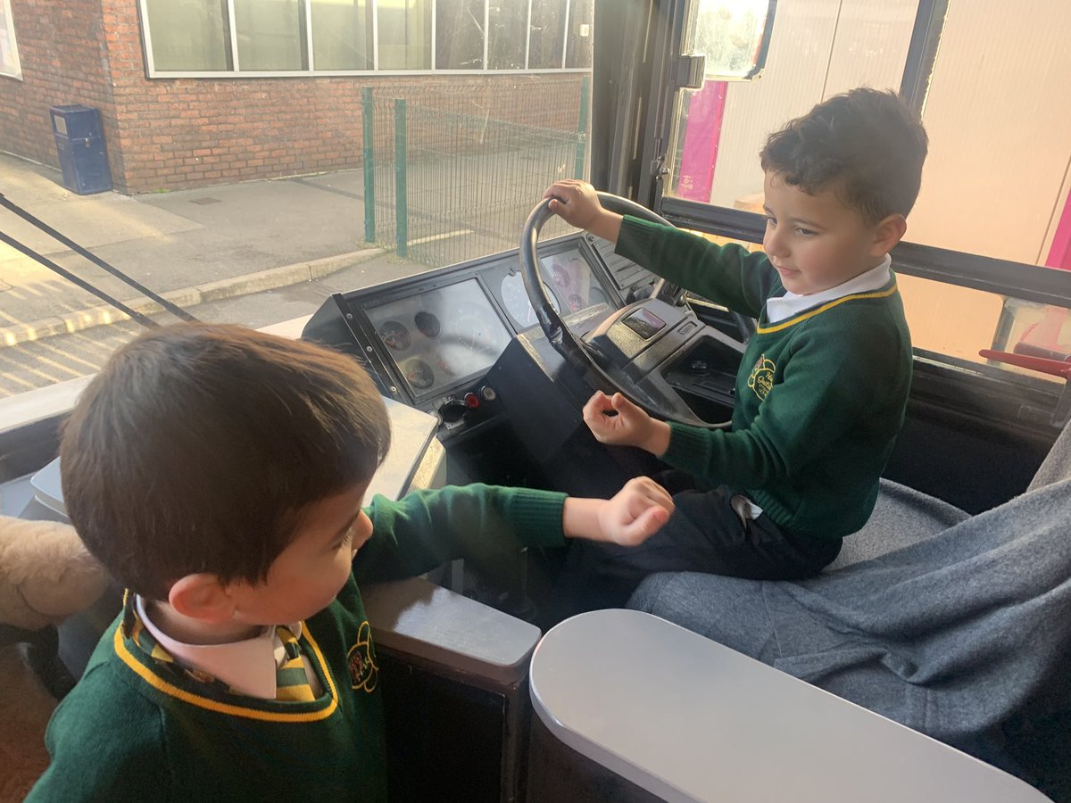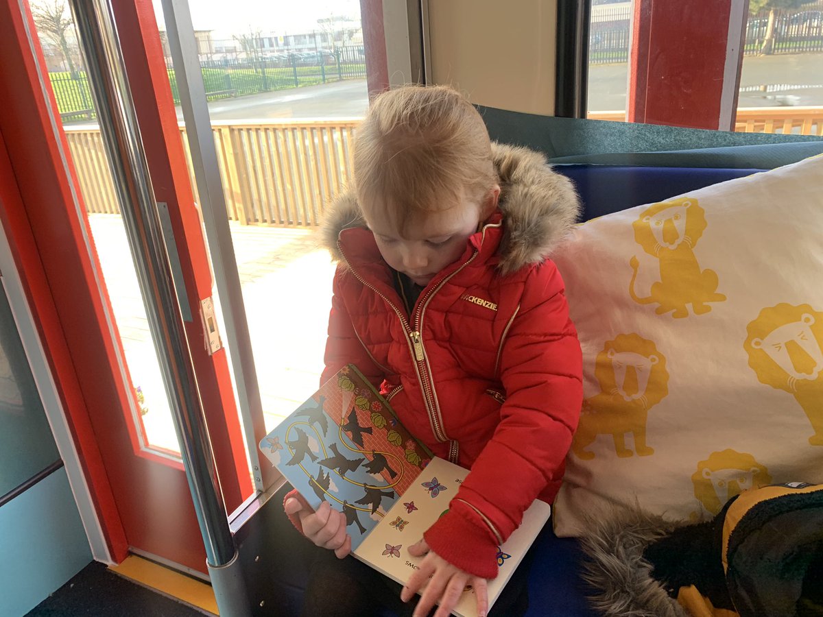 Robin Class having a fantastic time on Hughie the Library Bus!