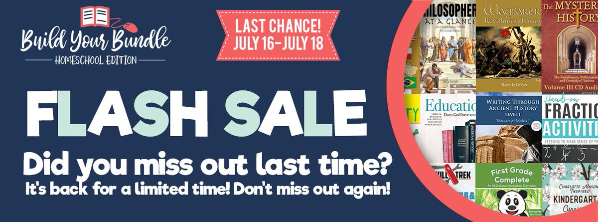 Last Chance to save up to 95% off on homeschool curriculum July 16th-18th! https://buildyourbundle.idevaffiliate.com/292.html