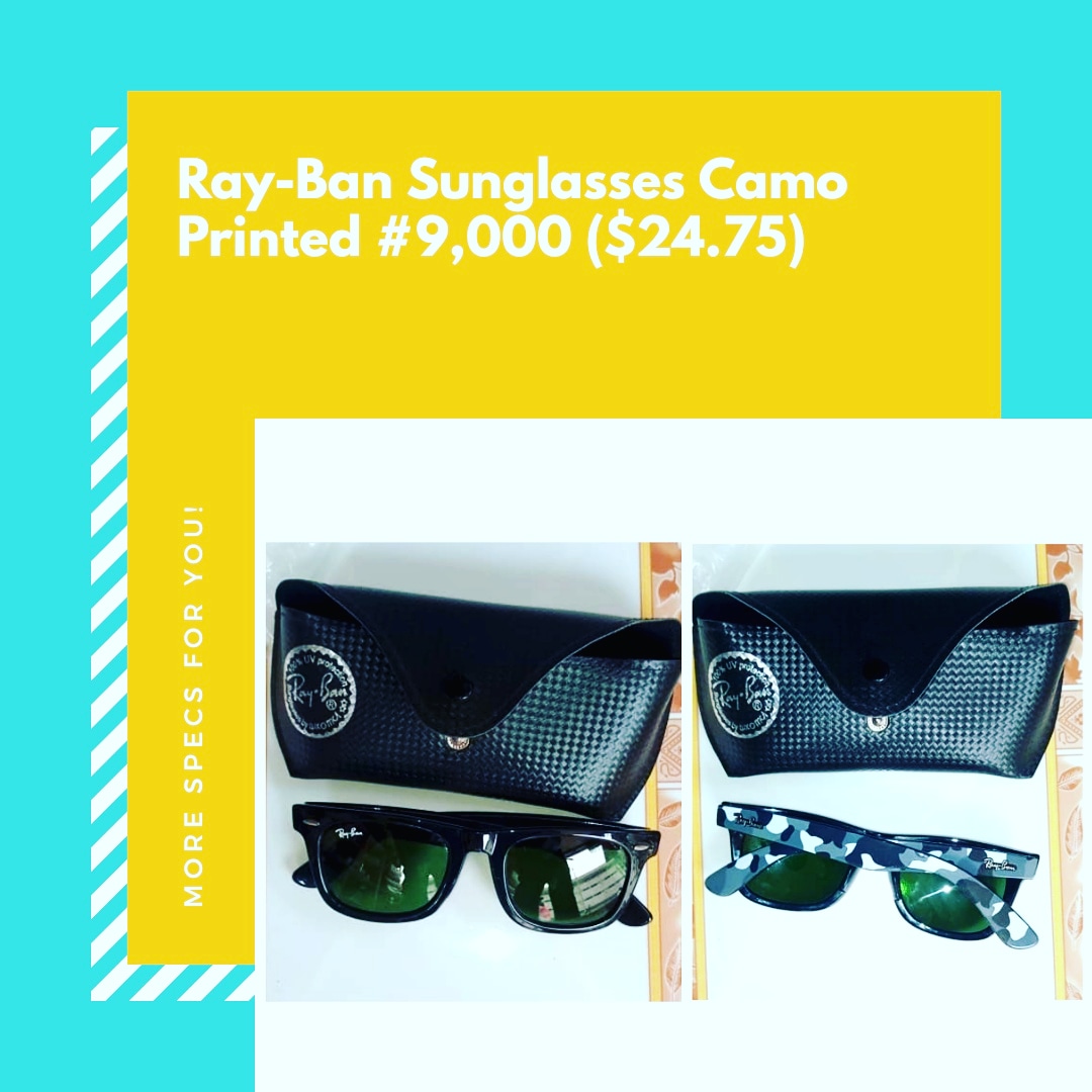 Get This Camo Printed Ray-Ban Sunglasses. #9,000 ($24.75) Free Delivery Within Lagos, Delivery worldwide, Kindly call/chat +2347083780964 to order... Please RT